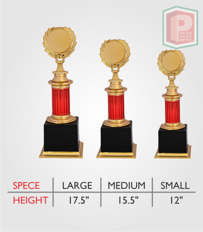 • Material - Fibre • Color - Gold Plated • Size - Large (17.5 inch), Medium (15.5 inch), Small (12 inch) • Printing Technique - Customisable with Digital • Minimum Qty. - 10 Pcs • Dispatch Time - 1-3 Days • Extra Delivery Charges