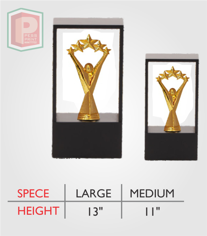 • Material - Fibre • Color - Gold Plated • Size - Large (13 inch), Medium (11 inch) • Printing Technique - Customizable with Digital • Minimum Qty. - 10 Pcs • Dispatch Time - 1-3 Days • Extra Delivery Charges