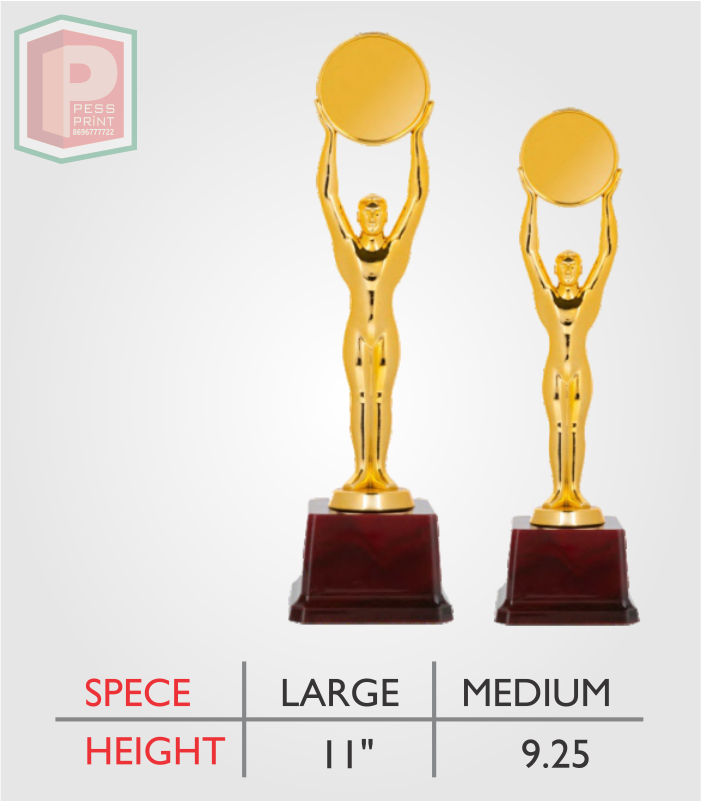 • Material - Fibre • Color - Gold Plated • Size - Large (11 inch), Medium (9.25 inch) • Printing Technique - Customizable with Digital • Minimum Qty. - 10 Pcs • Dispatch Time - 1-3 Days • Extra Delivery Charges